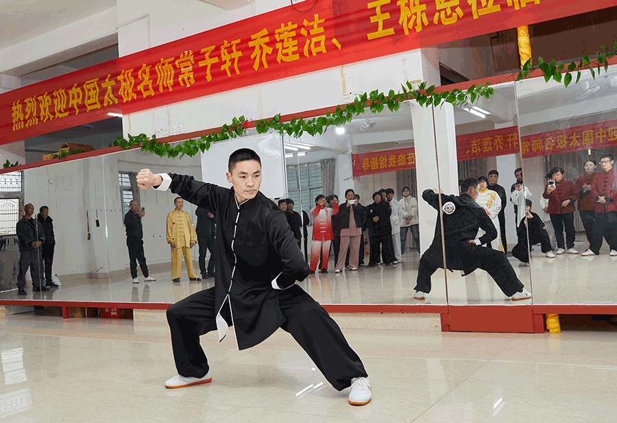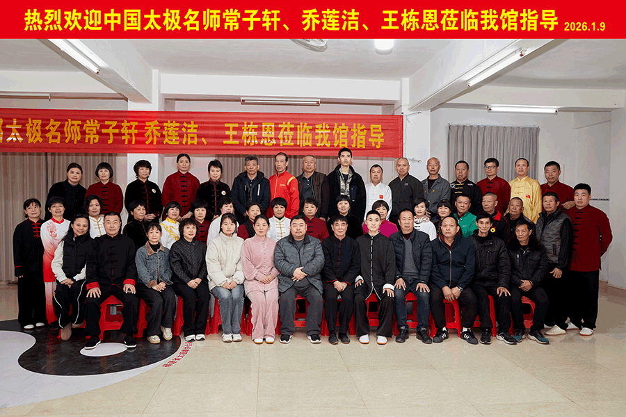 2026年1月7日—11日,常子轩太极拳研修院团队受邀走进许国强的太极拳馆,拳馆内悬挂的欢迎条幅,学员们脸上洋溢着期盼的笑容,无不彰显着晋江人民的热情好客,一场精彩的太极拳交流盛宴就此展开。拳馆内六十余名学员齐聚一堂,在许国强的带领下进行了拳法展示,整齐划一的动作、舒展大方的拳架、沉稳扎实的功底,尽显太极人的精气神。随后的个人展示环节,学员们各展所长,将太极拳的刚柔并济演绎得淋漓尽致。常子轩太极拳研修院的乔莲洁老师(全国太极拳传播大使)、常子轩老师的得意门生王栋恩(陈家沟太极拳推广中心高级拳师)现场精准示范动作要领,常子轩老师更是亲自幽默授课,为大家深度解析太极奥秘。